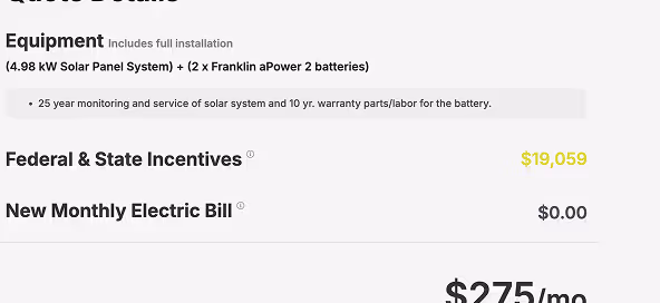 In just 2 minutes, you’ll get a real quote showing exactly how much energy your roof can produce—and what it would cost to go solar. Want to see what it looks like with a battery? Curious about financing? It’s all there, no sales pitch, no pressure. Just real answers, fast.